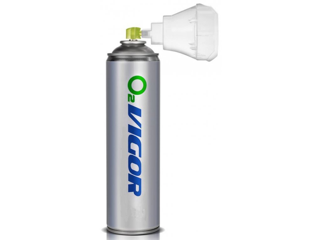 Praktickém balení kyslíku na dýchání ve spreji. Inhalace pomáhá k lepšímu okysličení krve a regeneraci buňek.