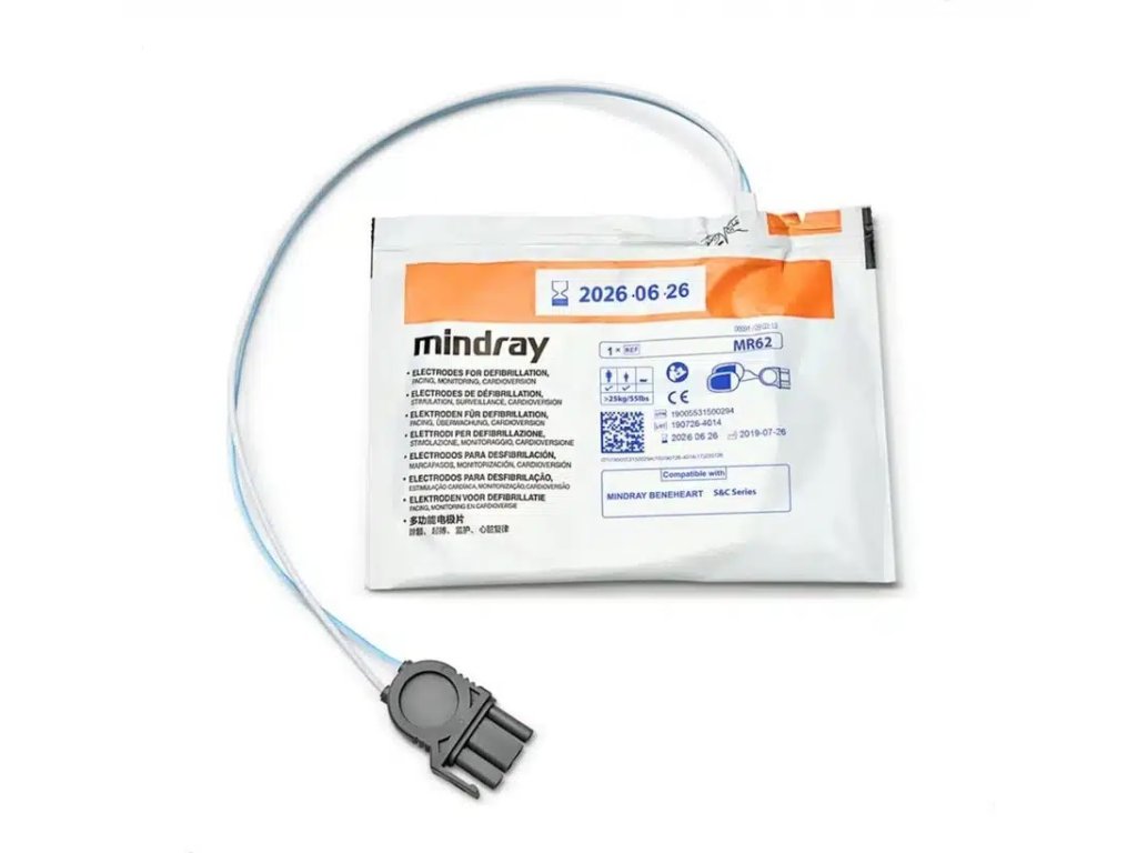 Jednorázové nalepovací defibrilační elektrody MR62 k AED Mindray BeneHeart. Kompatibilní s modely řady C a D1.