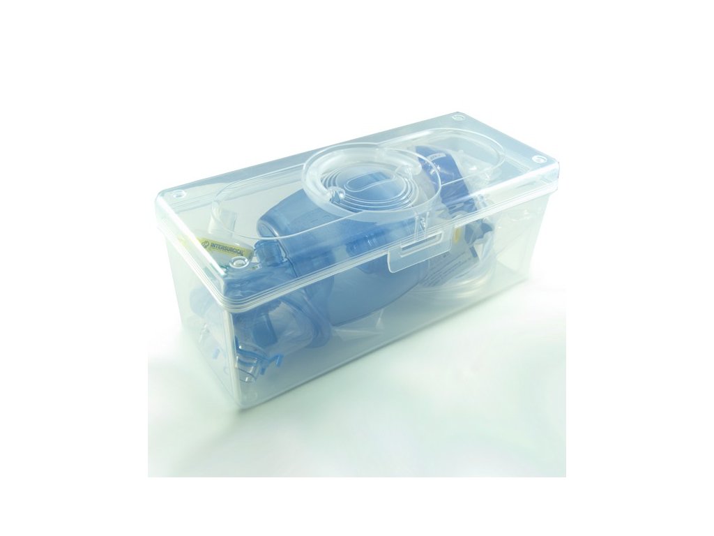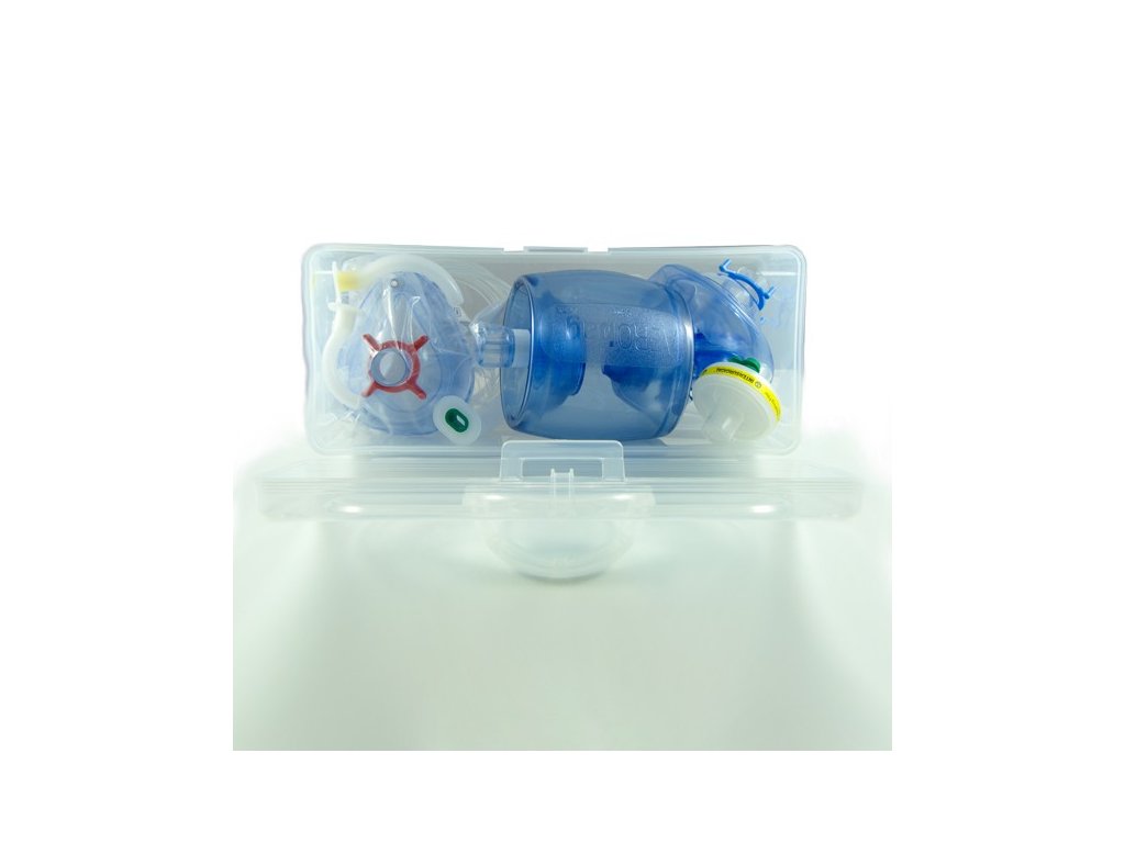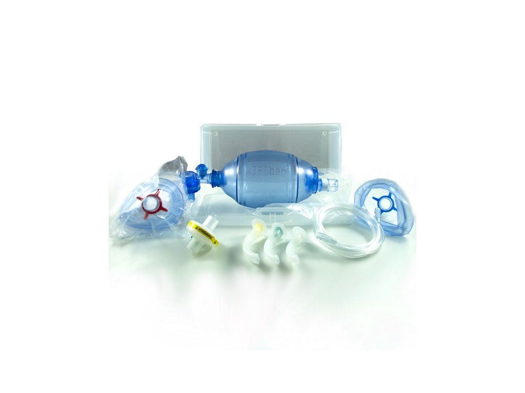 Sada, která obsahuje vše co potřebujete k resuscitaci, dýchací vak, masky a další pomůcky.