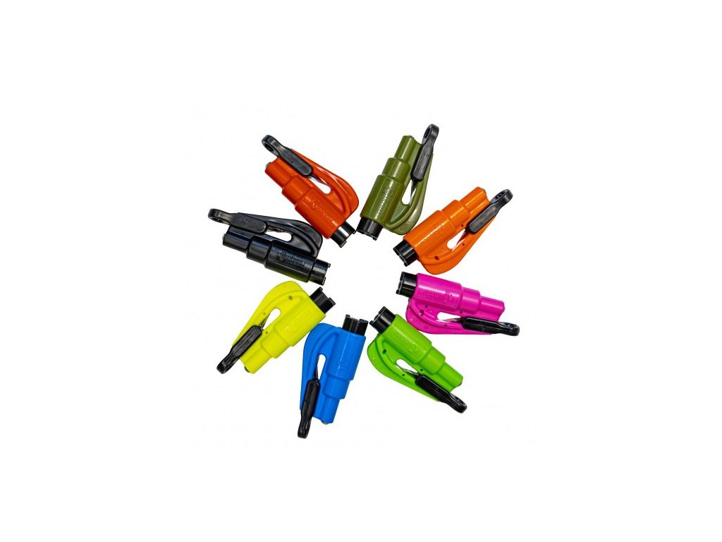 Originální a patentovaný nástroj, který umožňuje nouzový únik při uvíznutí v motorovém vozidle. S použitím nástrojě rozříznete zablokované bezpečnostní pásy a rozbijete boční okénka, takže cesta k úniku je pak volná. Obsahuje kovový kroužek na připnutí např. na klíče nebo batoh a intergrovanou píšťalku. Barva: červená.