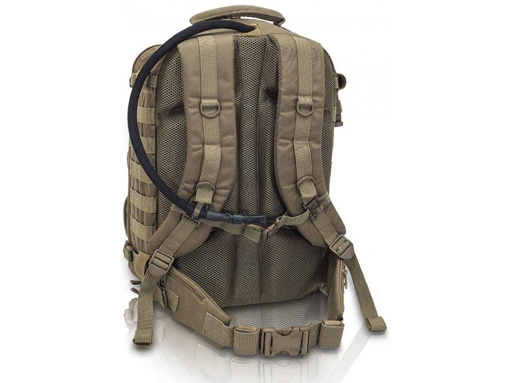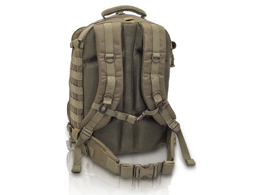 Systém MOLLE ve všech vnějších částech batohu, čelní i boční straně pro upevnění extra brašen nebo dalšího materiálu. Zádová strana má polstrované popruhy a bederní pás pro pohodlné nošení se systémem odvětrávání.